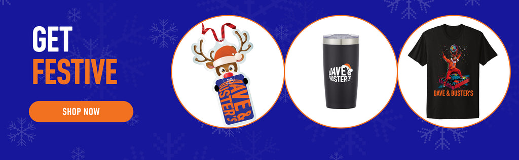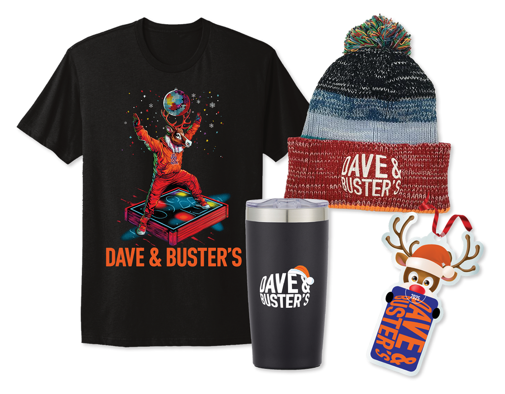 Celebrate the season with exclusive Dave & Buster's merchandise.