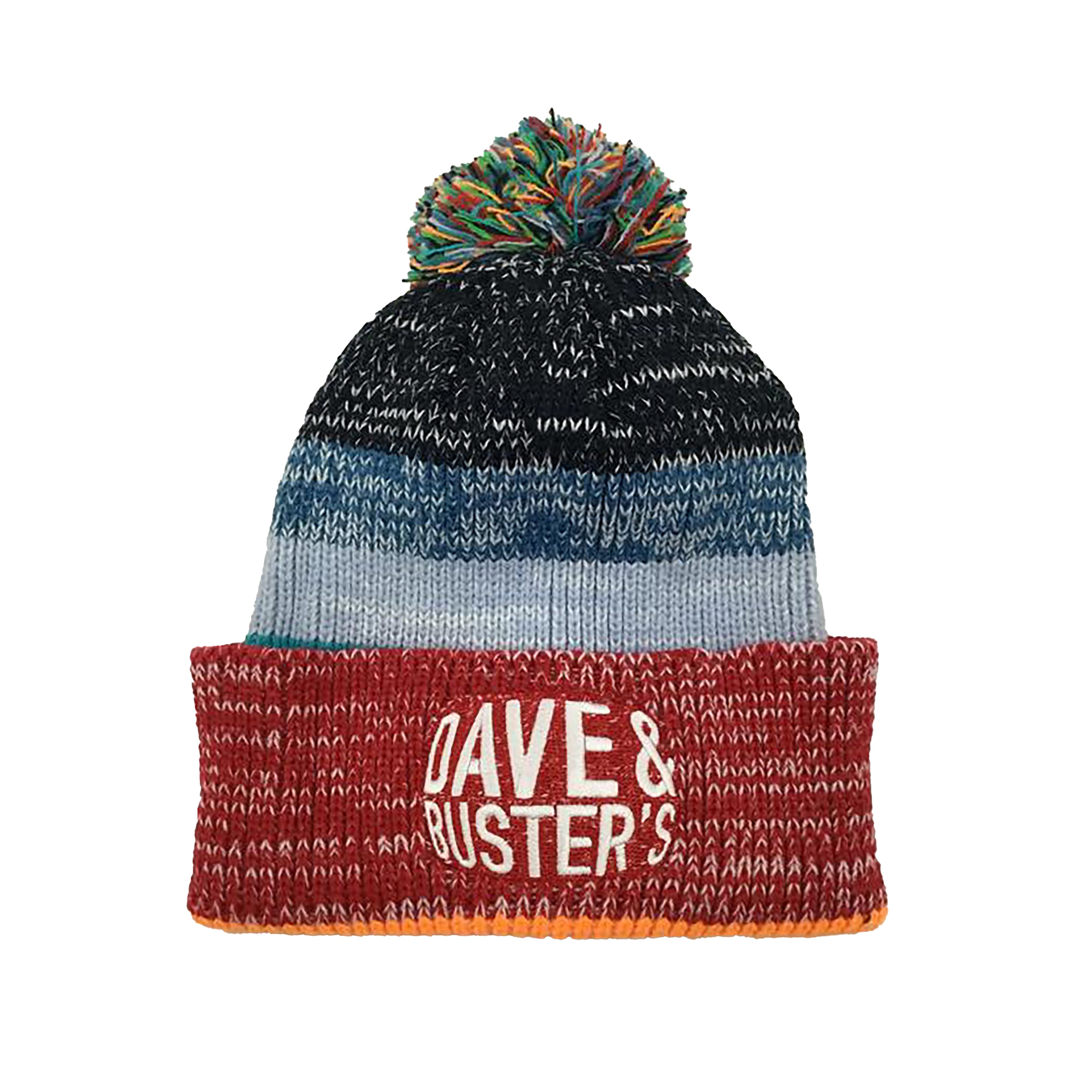 Stay cozy and on-trend this winter with the Pom Beanie, featuring a colorful knit design, playful pom-pom, and the crisp white Dave & Buster’s logo on the cuff. Warm, stylish, and fun, it’s the perfect accessory for holiday outings or gifting.